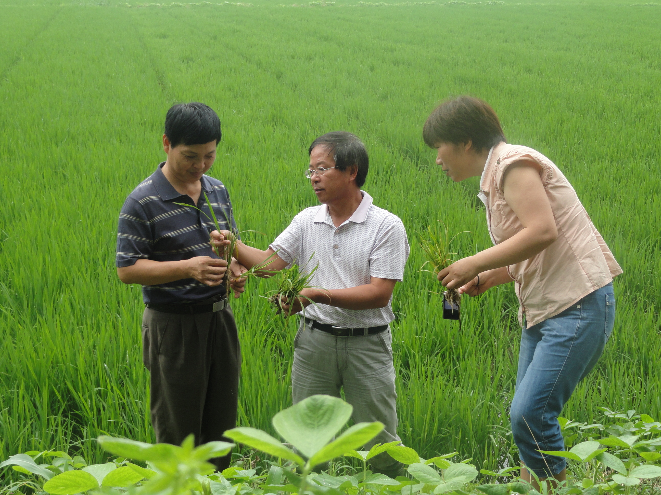 (王才林与汤玉庚导师(中)和洪德林师兄考察六优1号2)