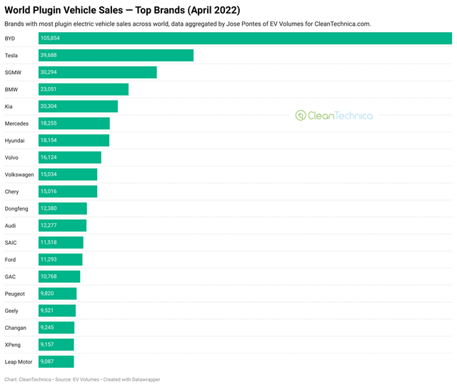 IT之家了解到,近日 CleanTechnica 发布了 4 月份电动车全球销量榜单,现代起亚排名第五。