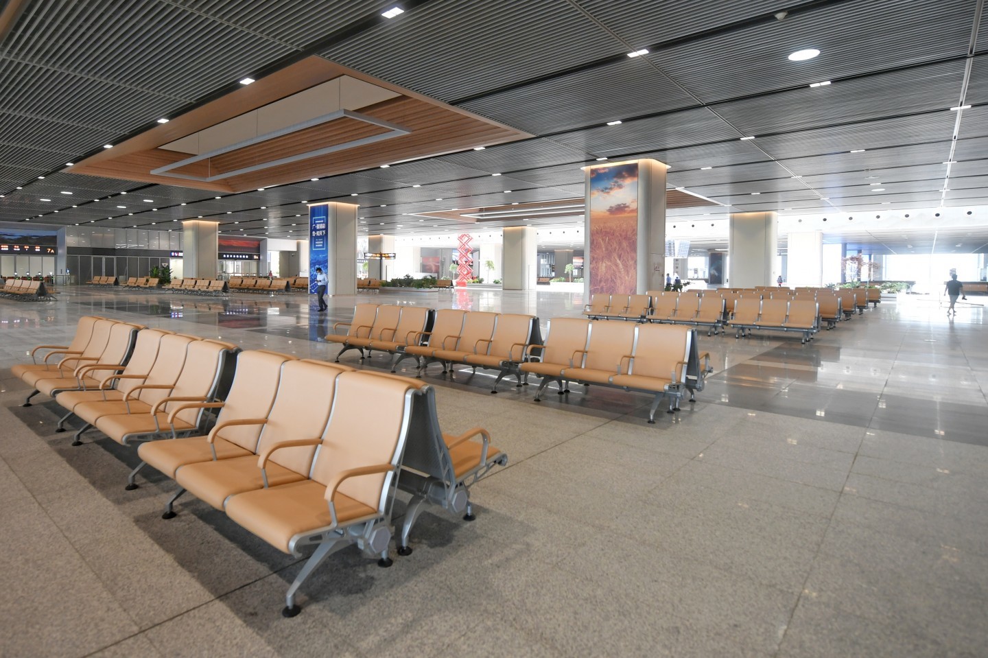 北京丰台站二层候车大厅座椅已安装完毕。北京丰台站地上二层是候车区域,乘坐高铁列车和普速列车的旅客均在此候车。新京报记者 王贵彬 摄