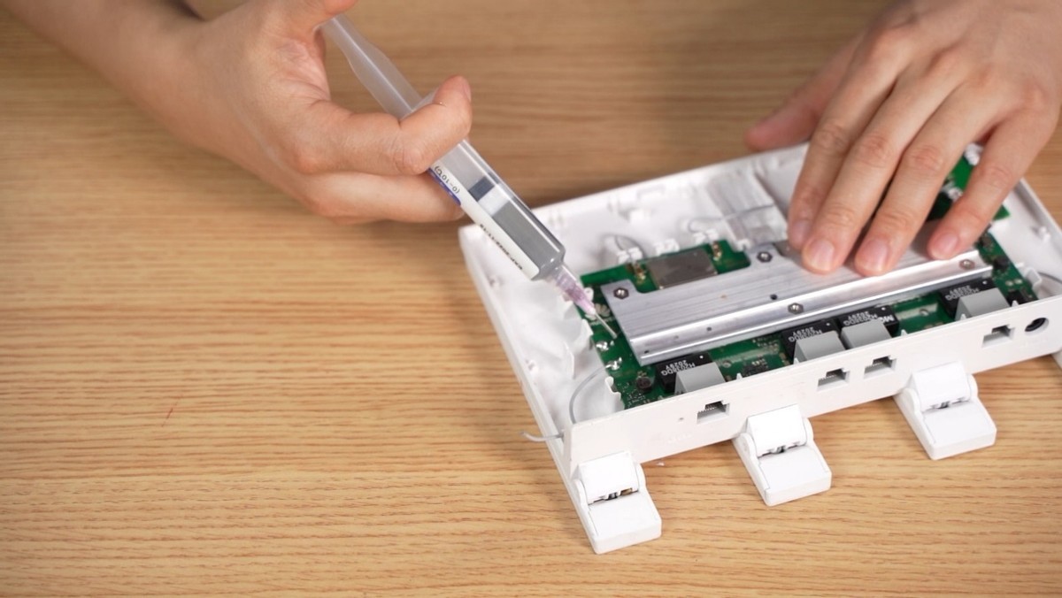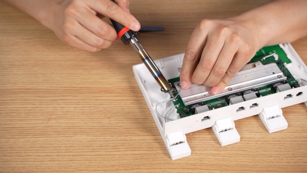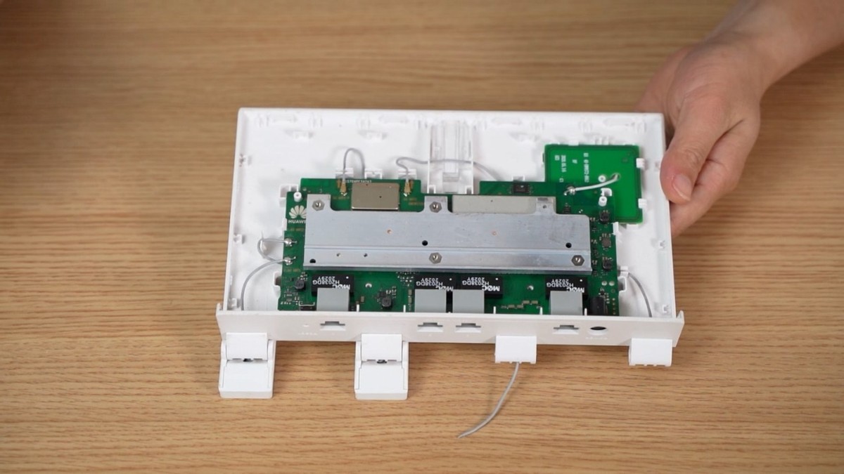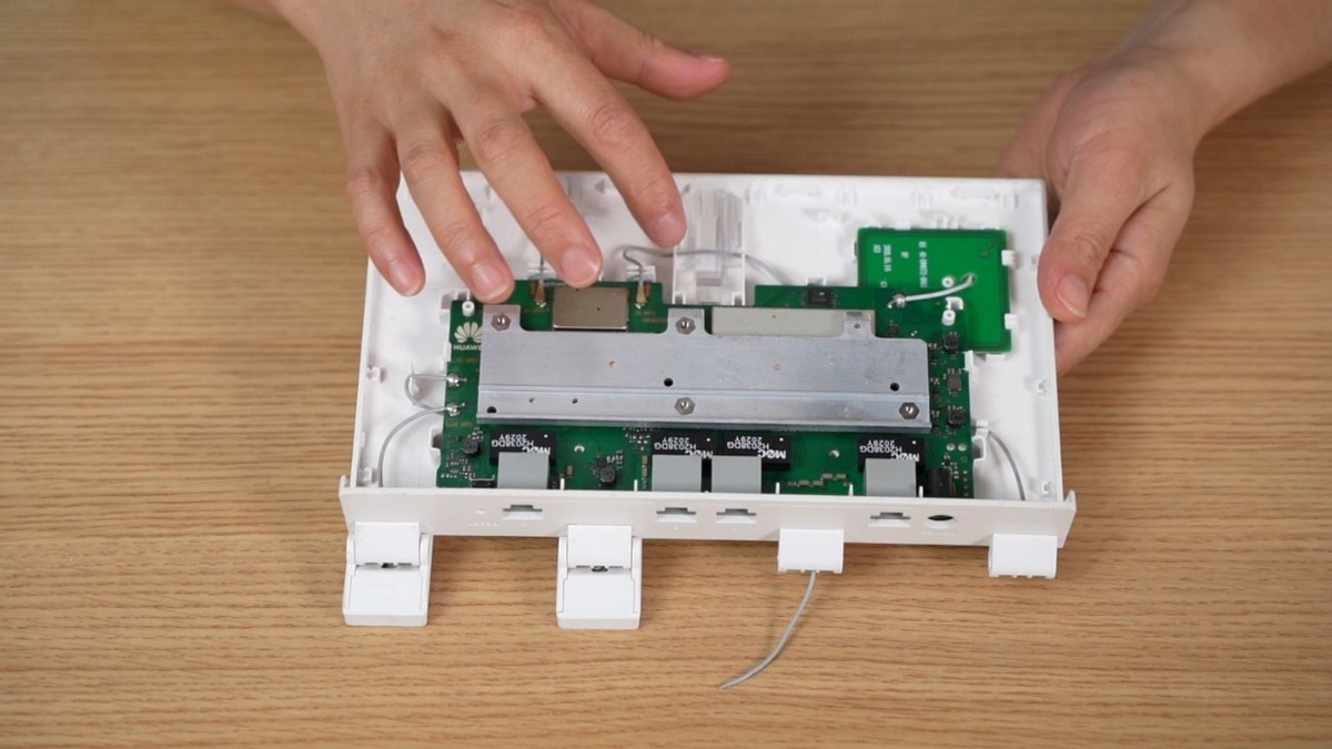 我们可以看到路由器总共有4根天线,2根5G天线采用卡扣连接,2根2.4G天线采用焊接,而我这台刚好是断了一根5G,一根2.4G天线,所以等下需要用到电烙铁焊接。