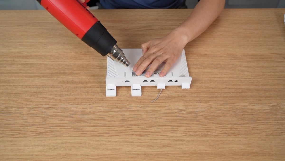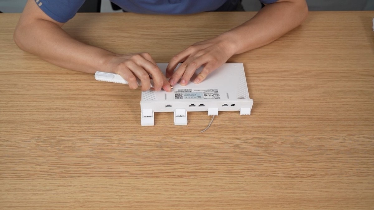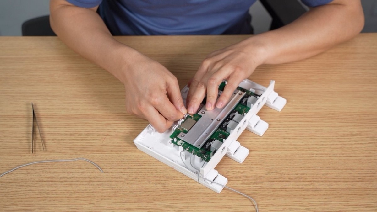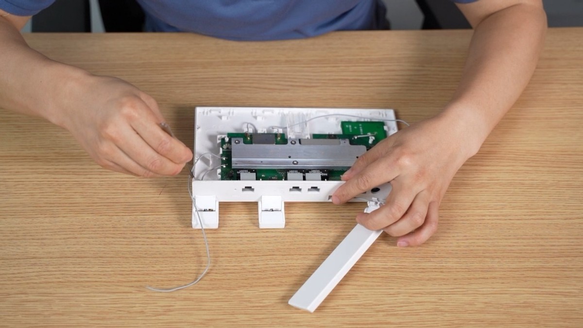 再安装5G天线,方法一样,5G天线的线缆采用卡扣连接,对准位置, 轻轻按压即可完成安装。