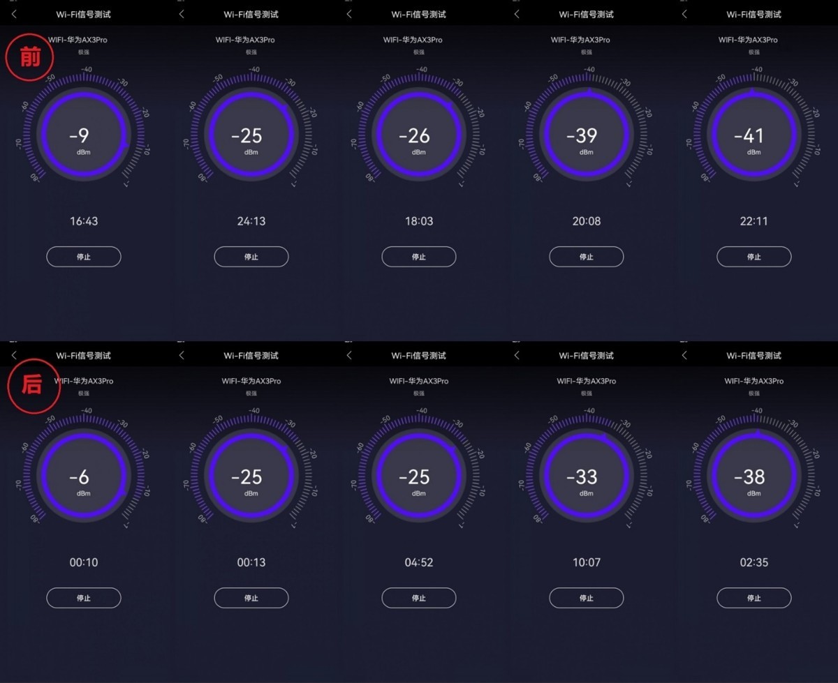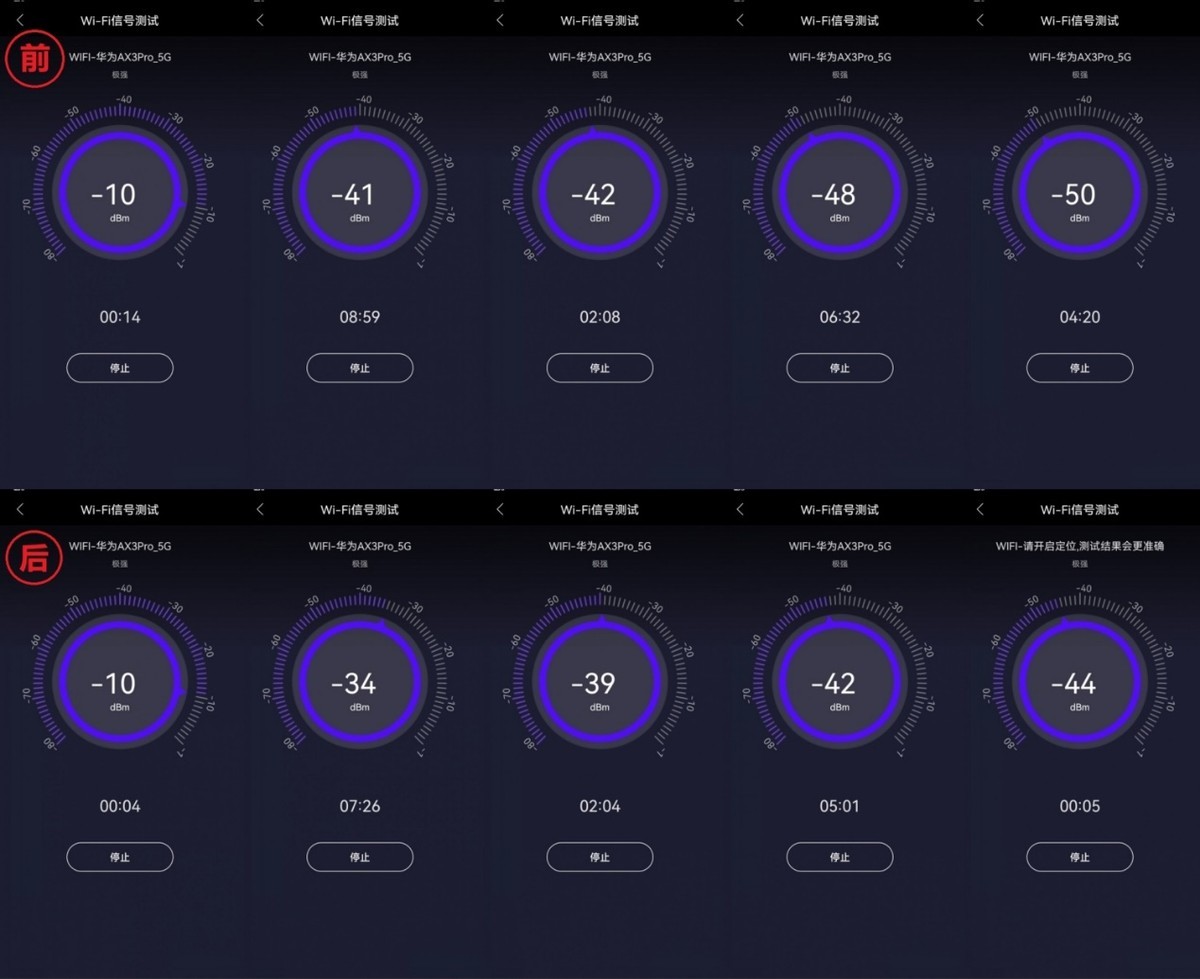 我们再来对比信号,发现维修后,2.4G和5G各有一个位置点信号没有提升之外,其他点位的信号都有比较明显的提升