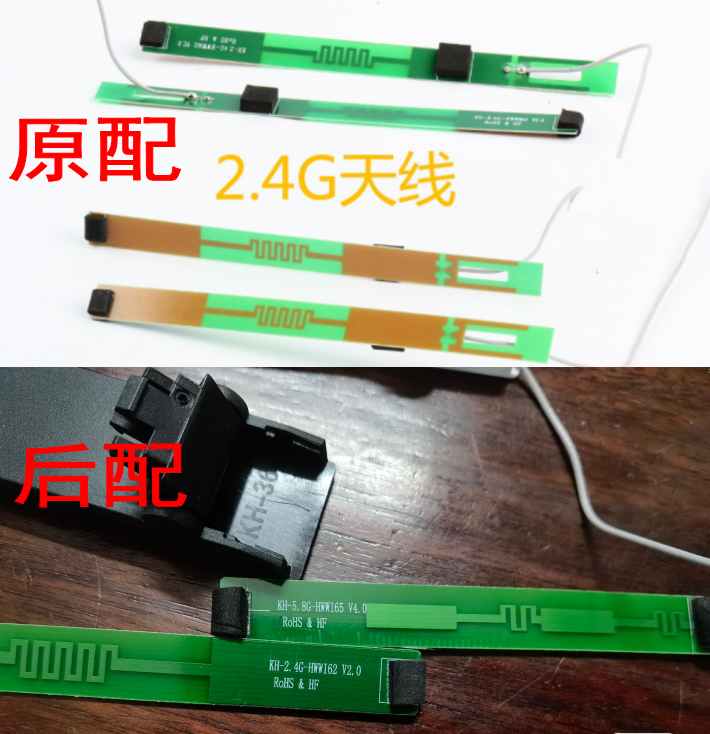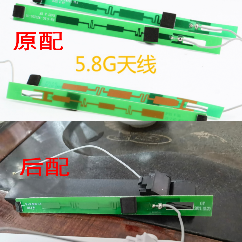 我们和原配天线做了一个对比,有一点细微的差别,都是印刷电路板天线了,应该可以用。但考虑到无线信号之间的干扰问题,我有点担心更换后会不会形成干扰,已经做好了白忙一场的打算了。