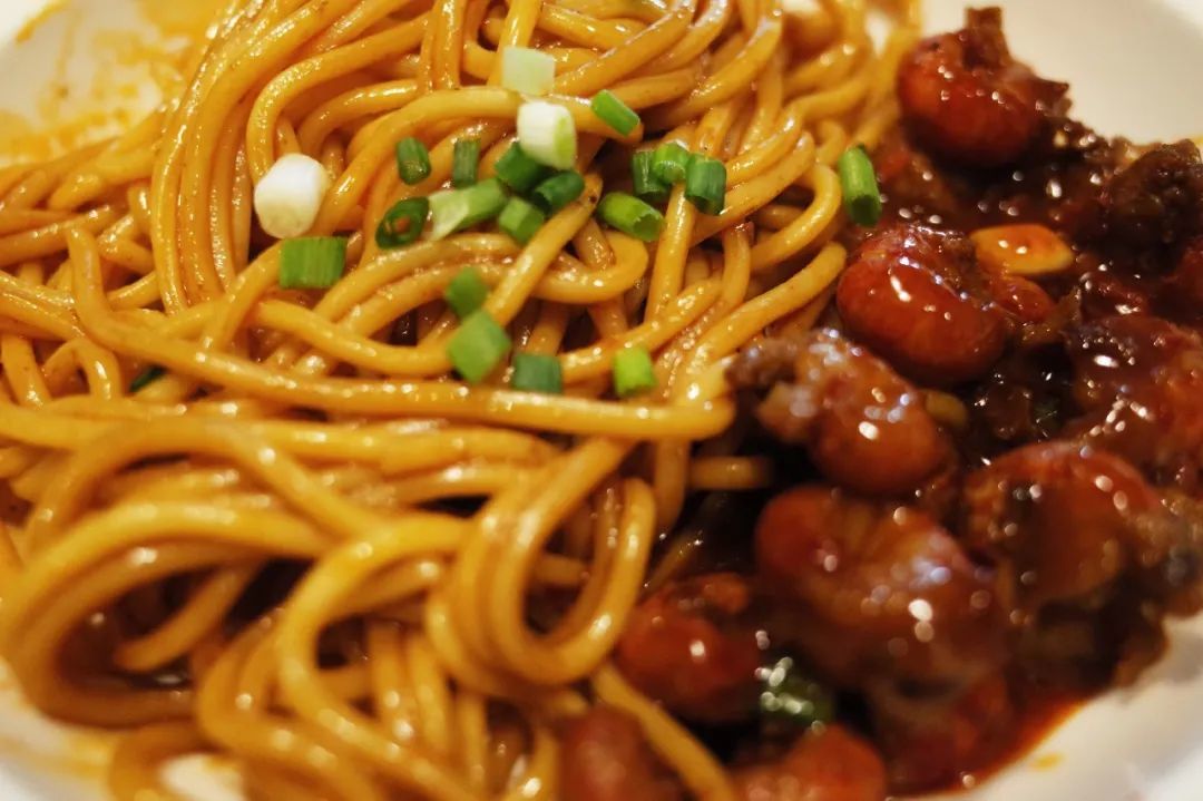 小龙虾的加入,添一丝鲜香之余,也为齿间这场切割运动,带来了更丰富的肉头。这个面,越吃越好吃,味道确实不简单。