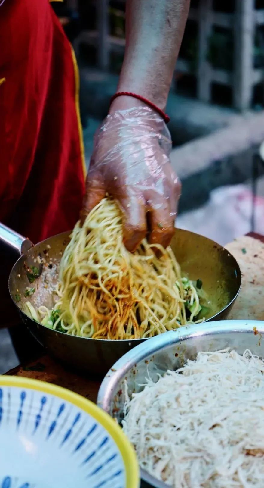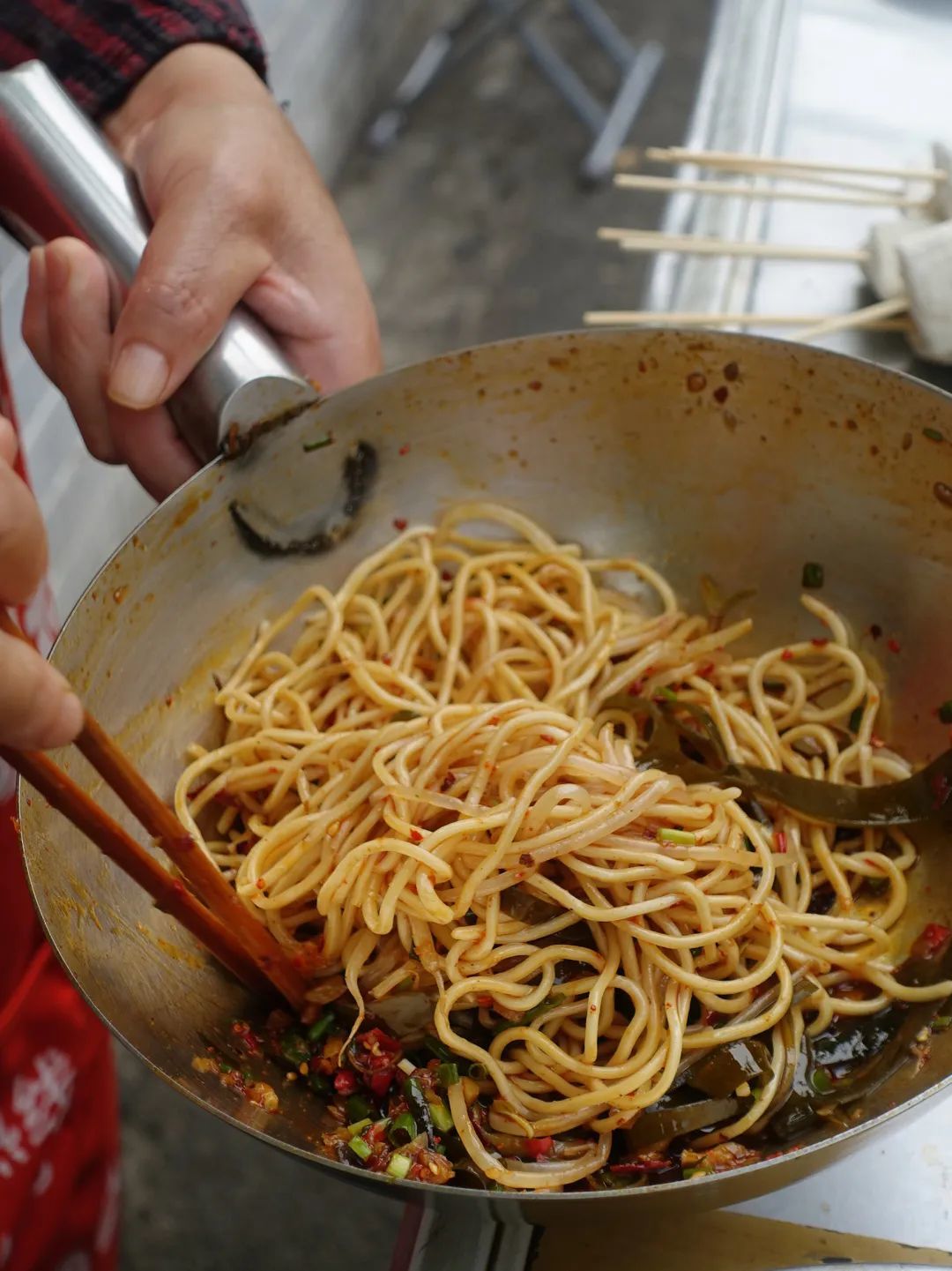 拌一碗凉面的全流程都在眼皮子底下,这个阵仗,不可能不好吃。糖醋麻辣的口味,回甜中,香辣的滋味更加明显。油水给得很足,我很喜欢。