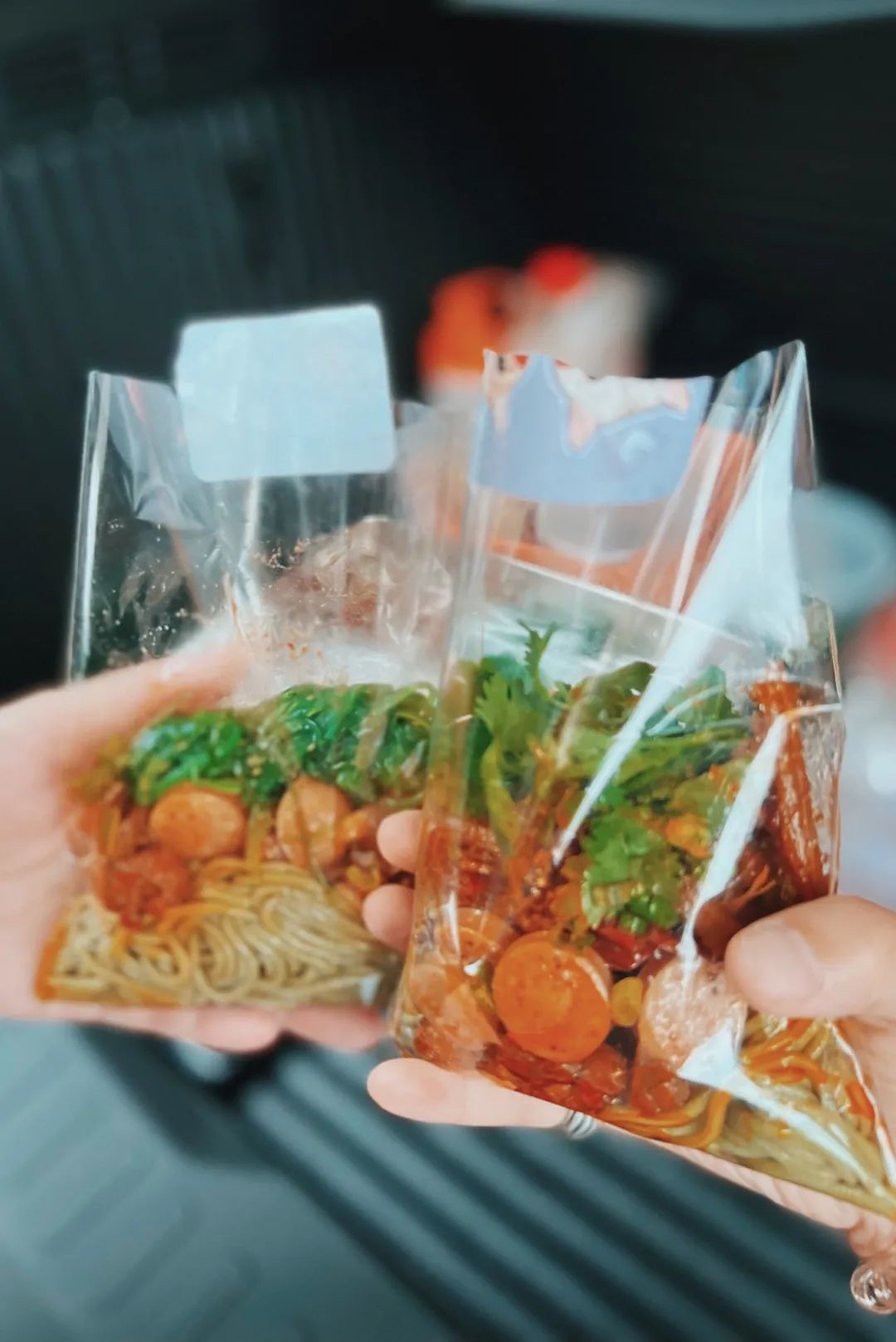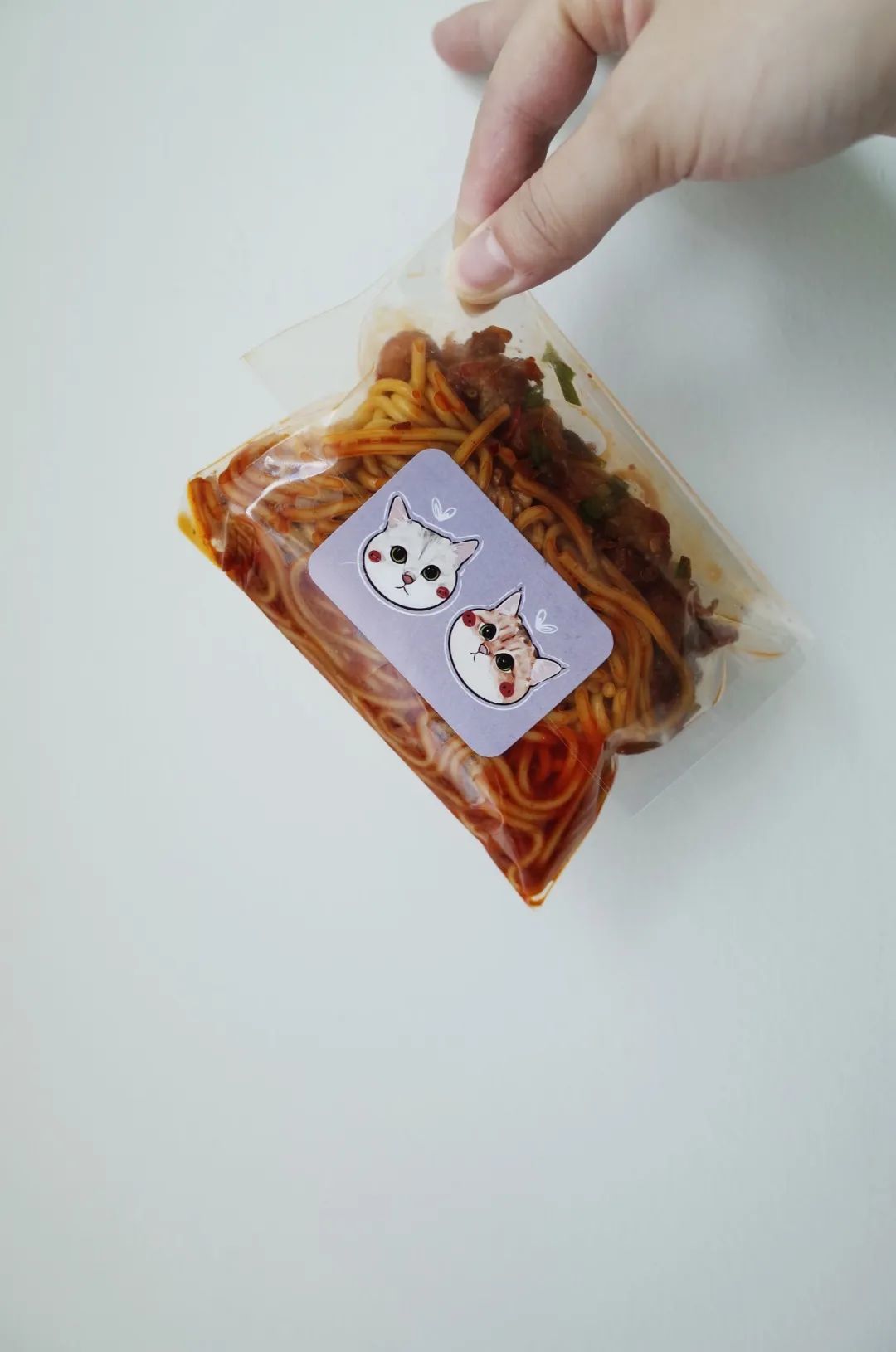 Ceci只是站在一边,待你买定离手后,把你选的浇头一个个放到面口袋头。滴两滴秘制酱料,加一点火山牛肉的汤油,口袋里的面瞬间青花亮色。