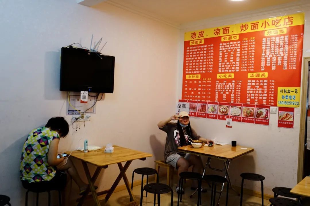 名字没有花头,就叫“凉面凉皮炒面小吃店”。铺子挨到大名鼎鼎的爱妻牛排,深深地藏在公寓的一套二里面。