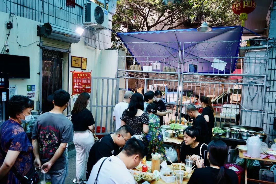 早上八点半开门,每天要卖到晚上九十点。尤其晚间,排队排得更加厉害。顾客也愿意排队等候,然后议论两句,“呜啦啦前几天来吃过”。