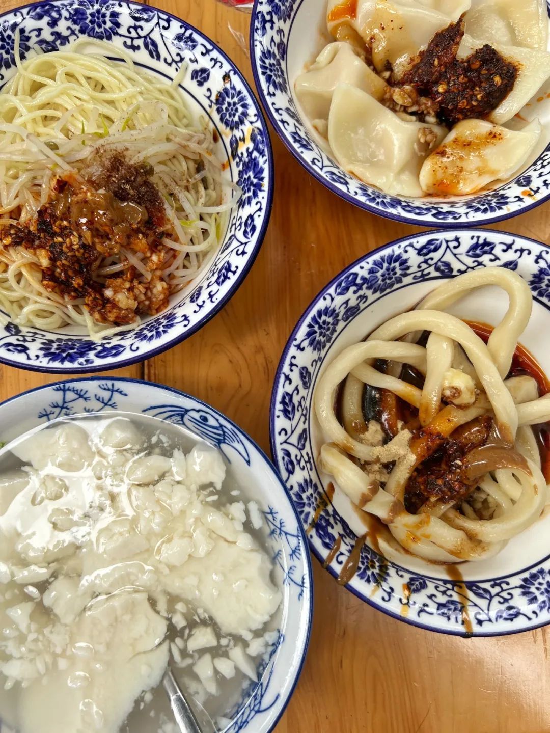 老板上菜的速度极快,不到两分钟冰醉豆花儿、甜水面、凉面、饺子就依次上来了。