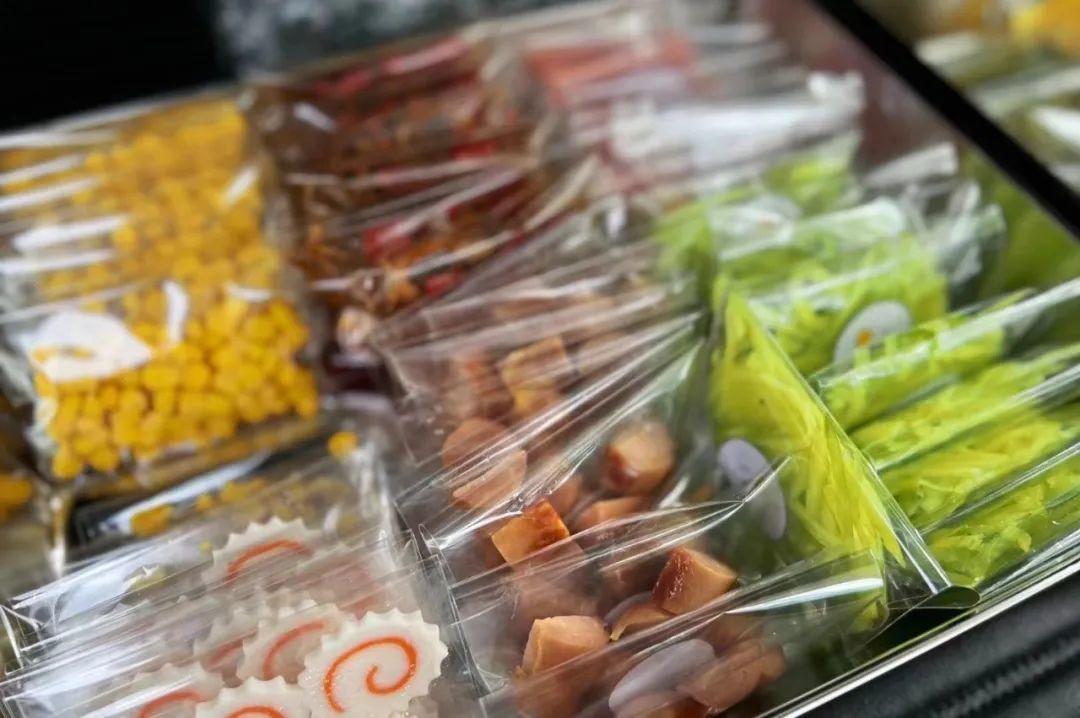 Ceci悄悄给我说,火山牛肉加小龙虾,更绝。于是我便加码要了双拼。挑选的全程,像是置身一个微距镜头下的迷你超市。