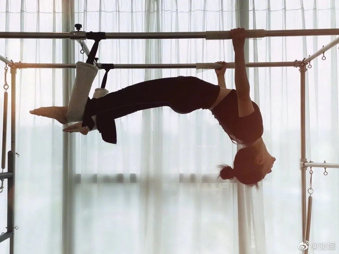 时不时在微博po自己做普拉提的照片,看这动作就知道长期练过的。