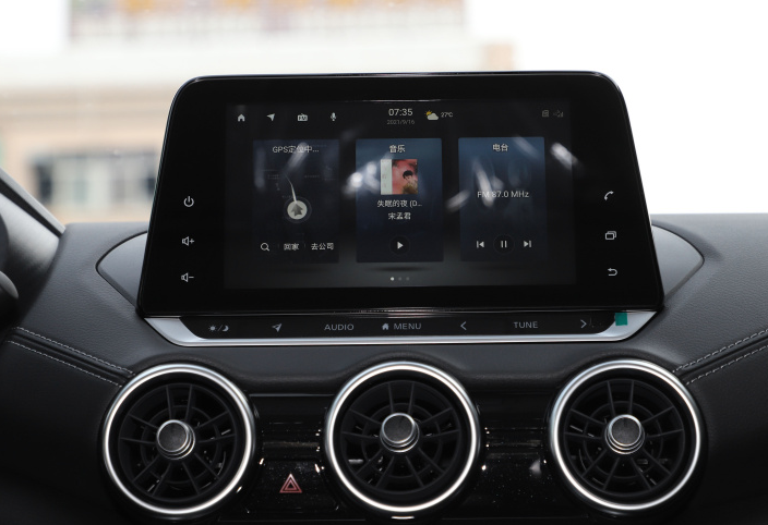 8英寸的中控液晶屏与三个圆形空调出风口上下组合,表现出一丝耍酷的味道,并且空调出风口部位还内置了行车记录仪,彻底俘获了年轻人激情的心。