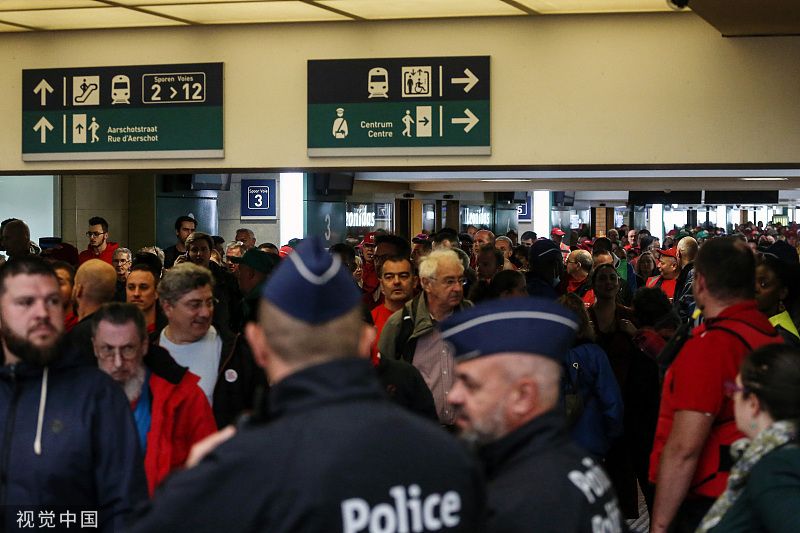 当地时间20日,比利时首都布鲁塞尔有七万余人走上街头举行游行示威,抗议高通胀导致的物价上涨。当天,比利时交通工人工会还组织了罢工,导致比利时机场出港航班取消和市内公共交通受阻。