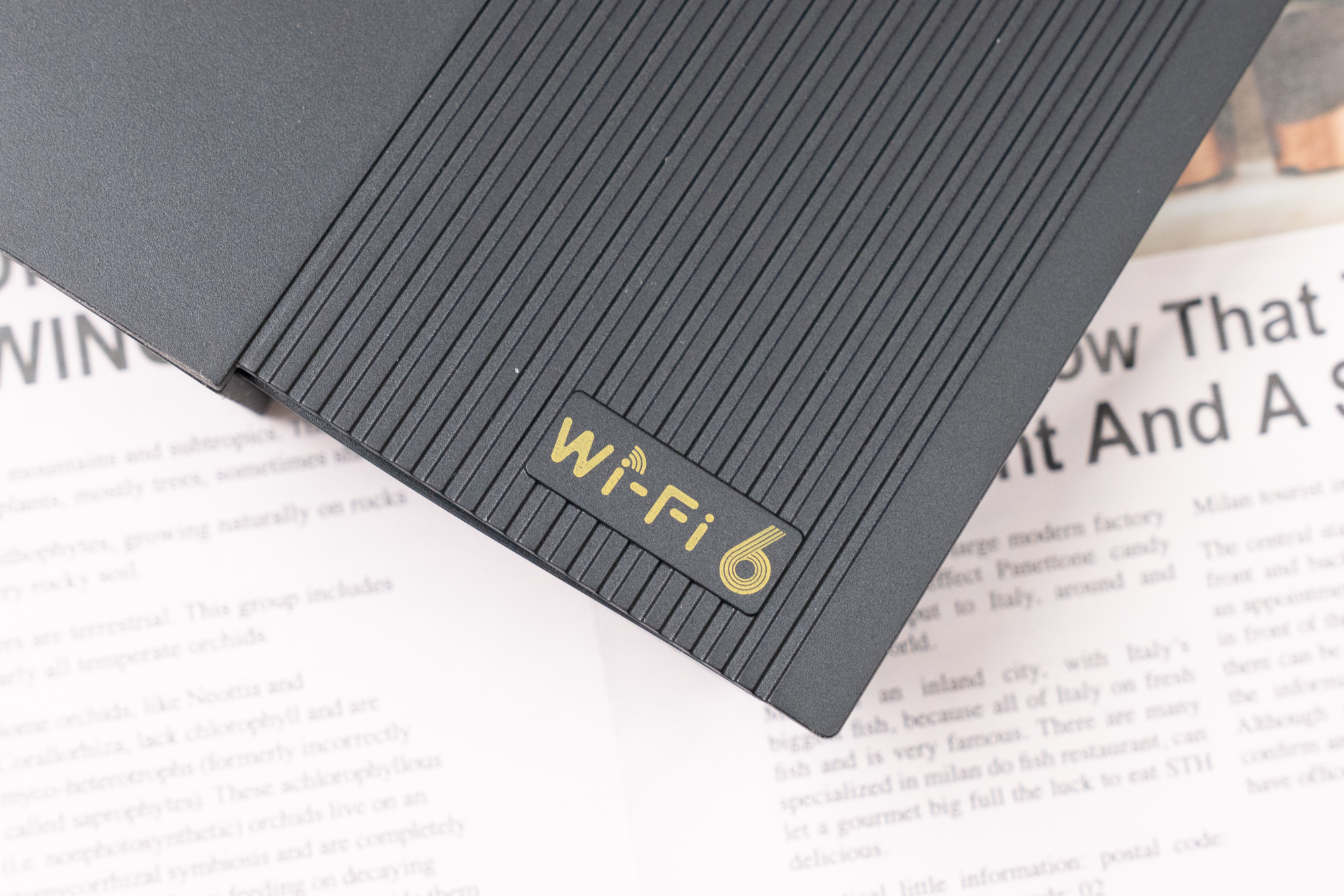 四根天线支起来,从外观看来和普通的路由器好像没有什么太大的差别,正面也就只有天邑品牌logo,右下角还有WIFI6的字样。