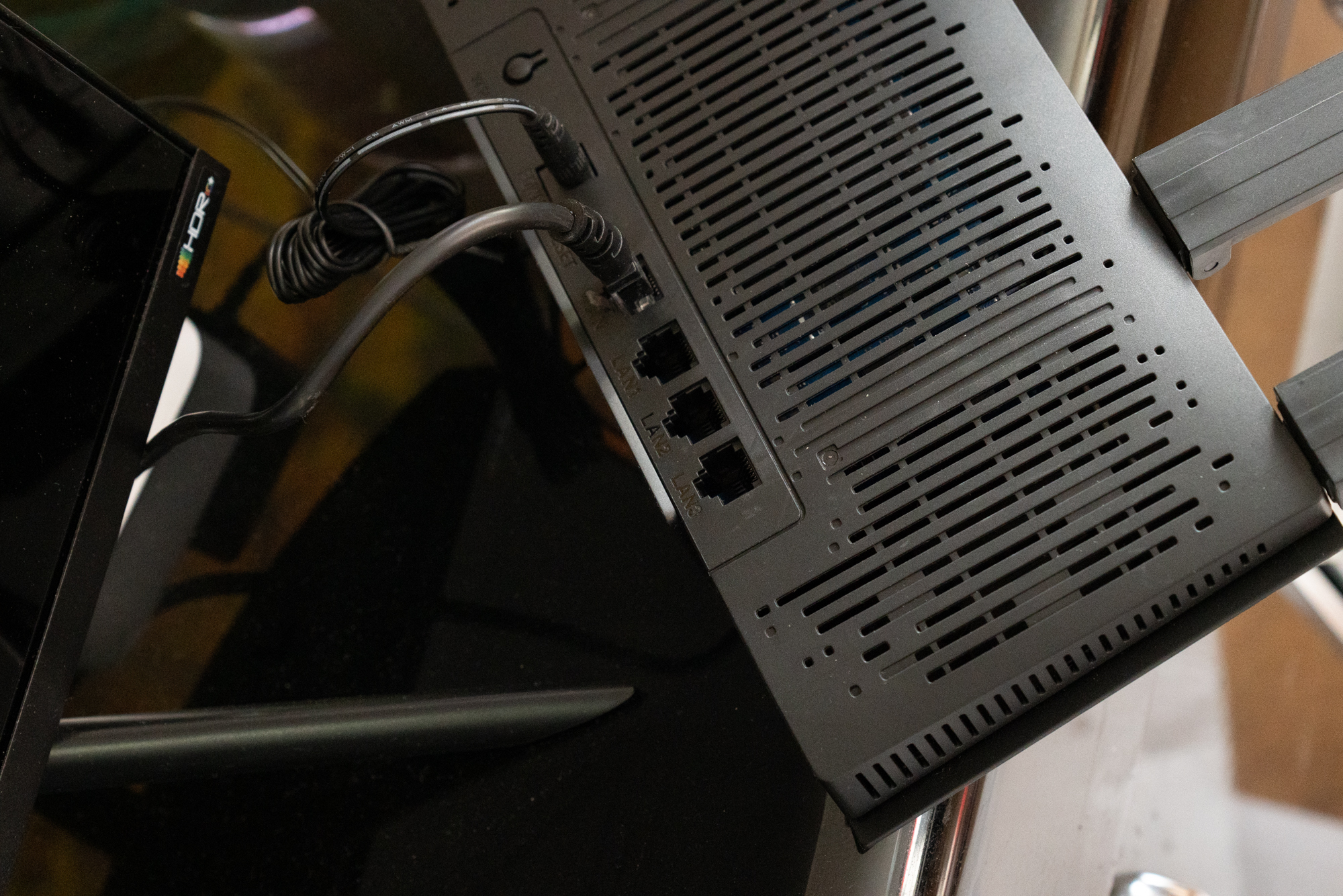 接下来让我们看看它的重点,背面。它的LAN口和WAN口都在散热面上,这样的设计就没那么普通了吧。这就是天邑路由器设计师的神奇脑回路。