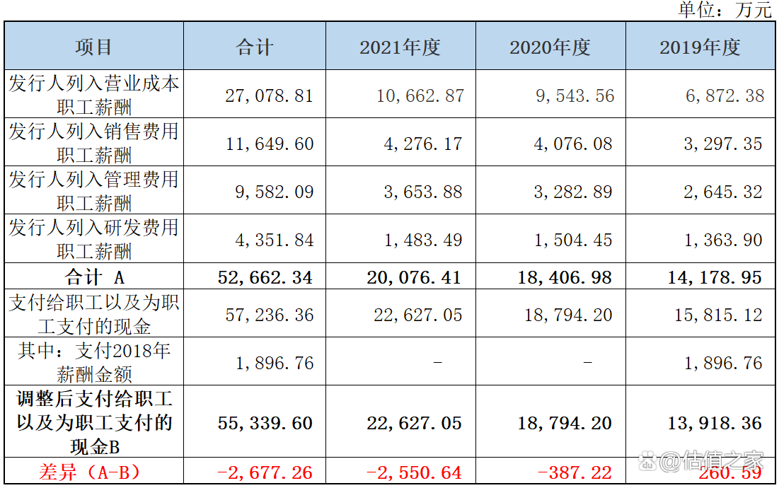 据招股书,发行人报告期内成本费用中职工薪酬与现金流量表中支付给职工以及为职工支付的现金勾稽情况如下: