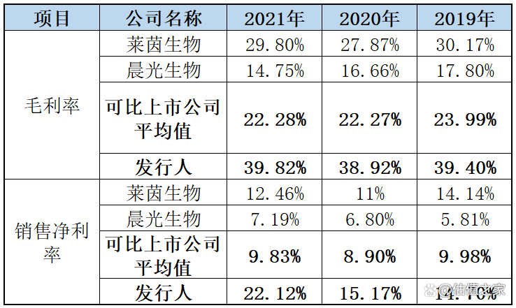 另外,从行业对比来看,发行人也同样展现了超强的竞争力,将贵为上市公司的两大龙头类植物提取物企业远远甩在身后,其平均毛利率、销售净利率大幅超过可比公司分别达16.54%、7.76%,详见下表: