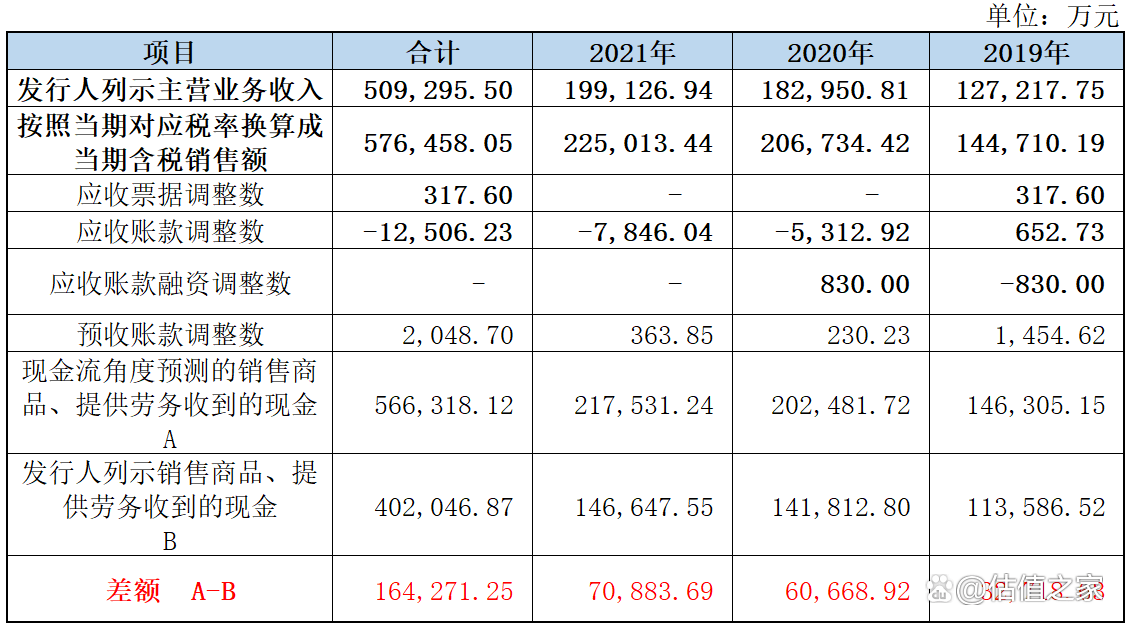 据招股书,含税销售额调整为现金流角度的销售商品、提供劳务收到的现金与发行人列示的销售商品、提供劳务收到的现金差异达16.43亿元,详情见下表: