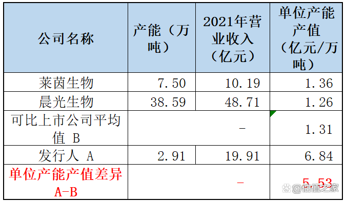 此外,估值之家根据招股书计算出发行人及可比公司单位产能产值情况如下: