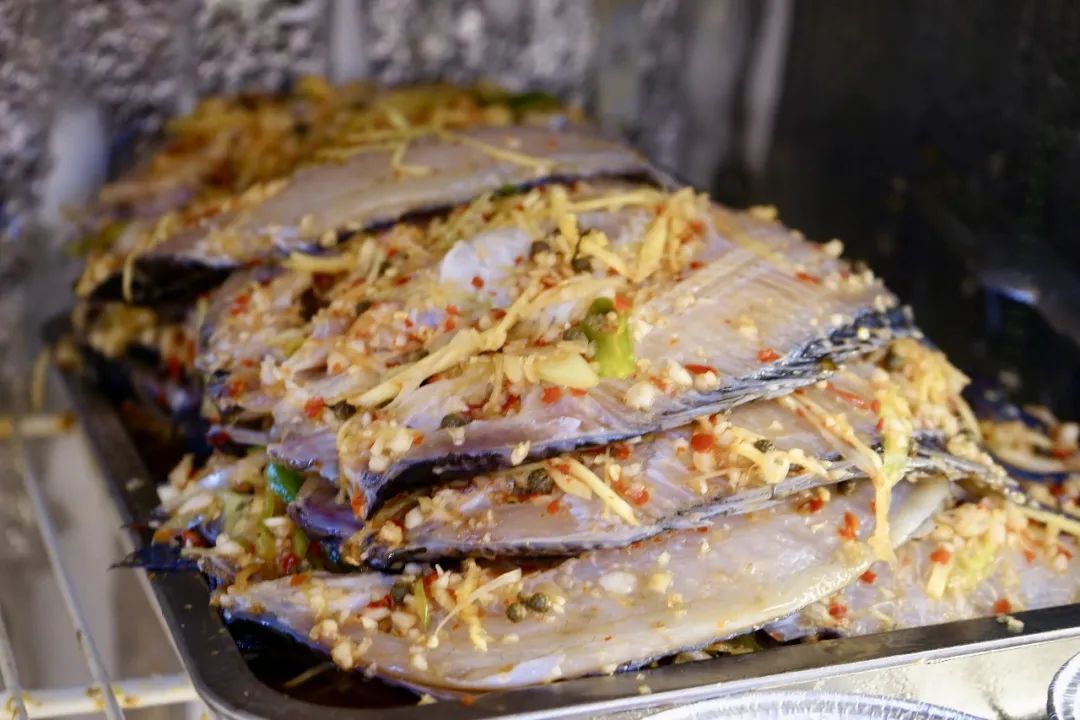 层层堆叠,罗非鱼提前码料在冰箱中腌制,很难不心动。