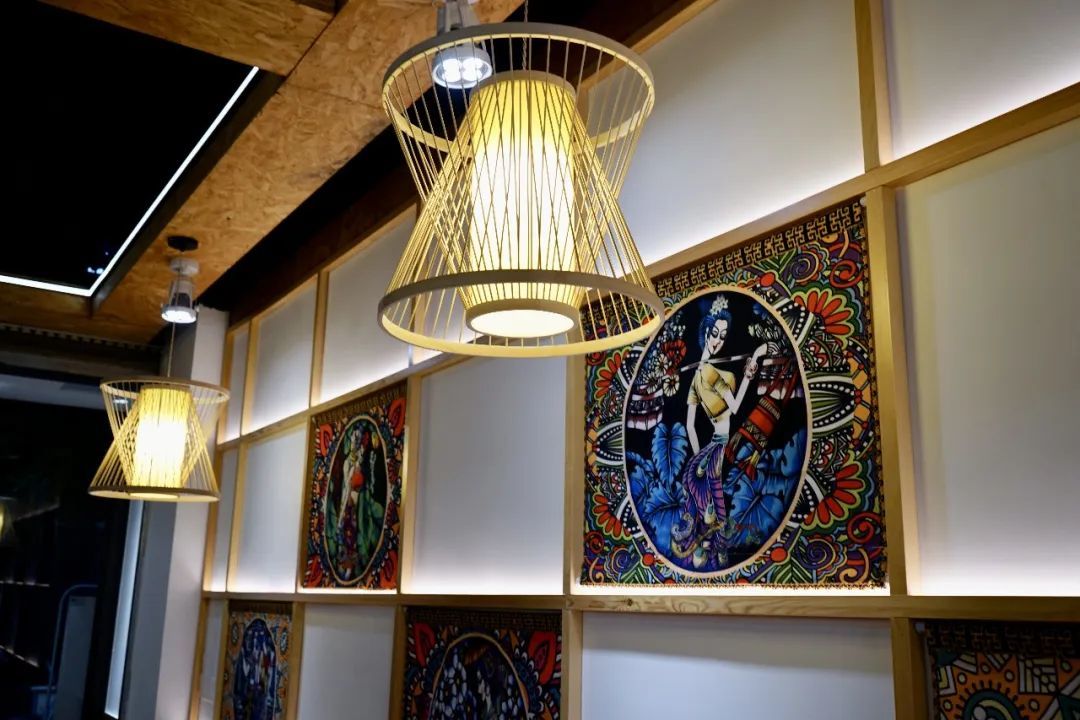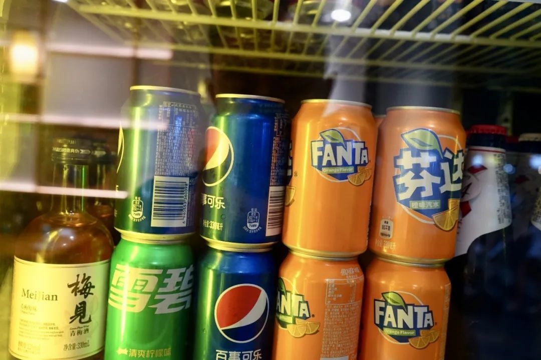 店内装修挂画,有点民族风。门口的冰柜里,可乐只有百事可乐,没有可口可乐。可口可乐摆在店最里面不明显的位置。