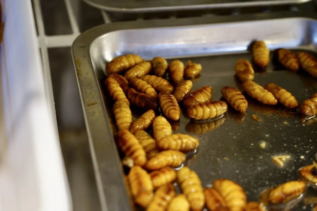 其他菜品本打算少拿点,可是在打开冰箱大门的时候,手就不听使唤。菜品新鲜且丰富,大多都有地域特色。真的有蚕蛹有烤虫子,“你要是敢吃你就拿”。