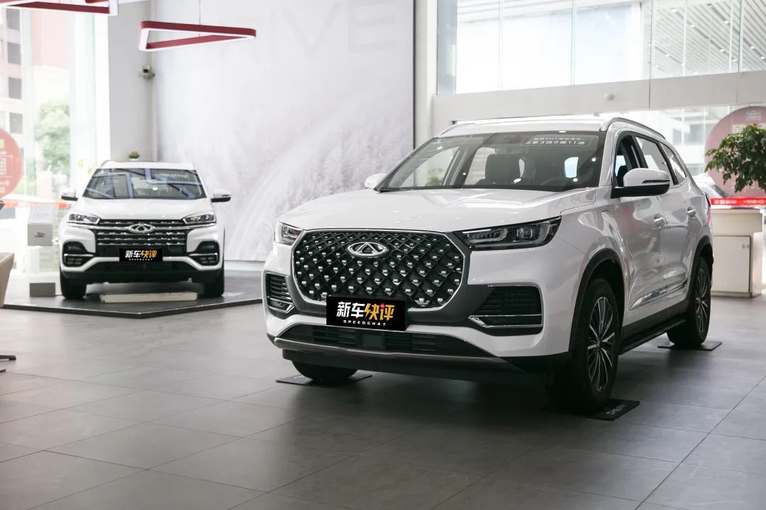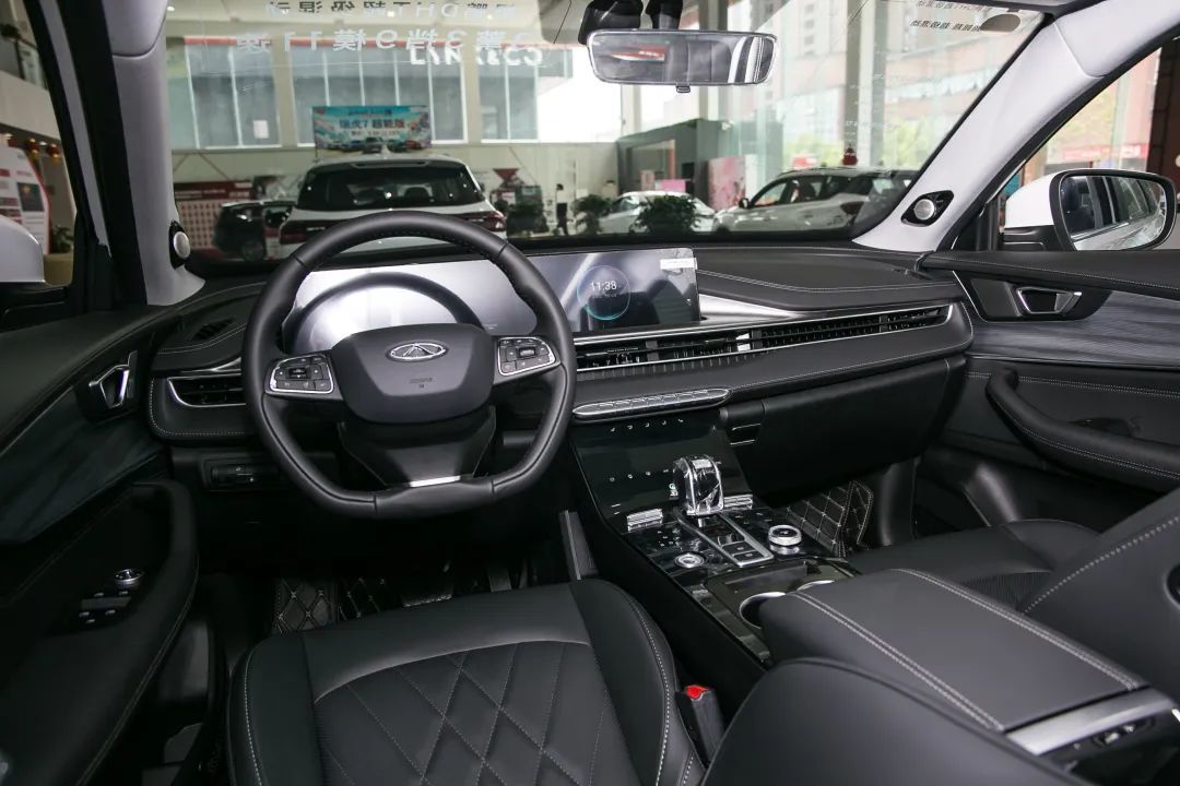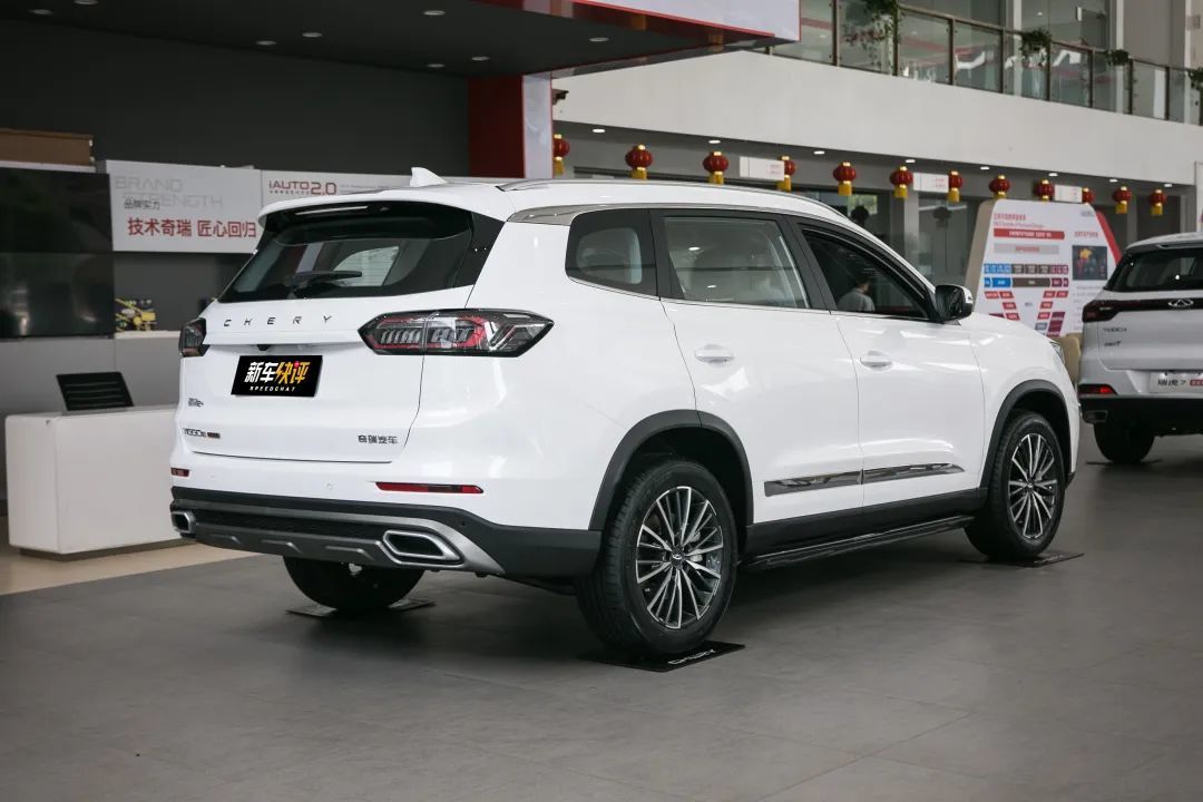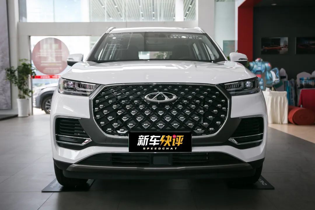 瑞虎8 PLUS鲲鹏e+是基于传统燃油版瑞虎8 PLUS设计的一款油电混动车型。在外观设计上基本上没有太大的区别,前脸依然是星空式的镀铬大尺寸进气格栅,整体霸气给人视觉的稳重感。在车身上,如果不是前翼子板上的充电口和尾部的标识,估计大部分人无法第一时间分辨哪款是鲲鹏e+的车型。