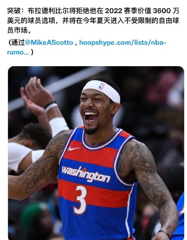 其实无需太惊讶,比尔之所以选择进入自由市场,大概率是为与奇才签订五年2.5亿美元超级顶薪续约,以后每个赛季均薪5000万美元。