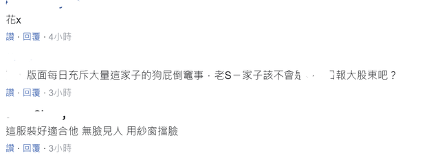 还有网友讽刺这一家子是不是某报大股东,天天充斥着这一家子的事,还有网友更是毒舌大骂“无脸见人,用纱窗挡脸”,不得不说还是中国台湾网友会骂。