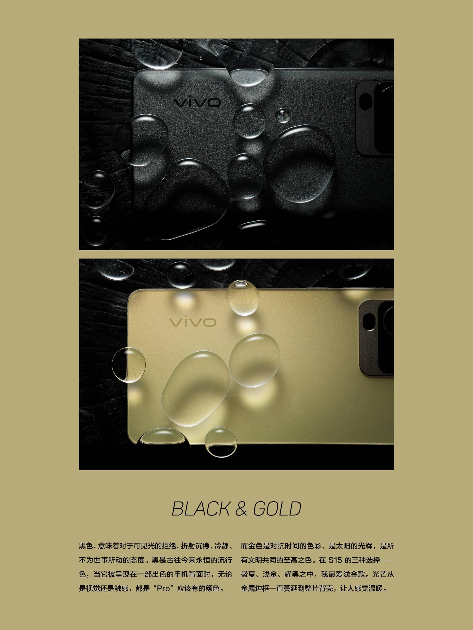 除了工艺与用料外,在机身设计与配色上看出vivo设计师的用心。不同人对手机的审美不同,有的用户认为直屏设计好看,有的用户更喜欢曲面屏设计。为了满足用户不一样的审美需求,设计师在vivo S15上采用中极点直屏设计,在vivo S15 Pro上采用双曲面屏设计,看出对用户审美需求的重视。在配色上,设计师精心调出了盛夏、浅金、耀黑三款吸睛配色,从图片中,我们可以直观感受vivo S15系列配色独特的美感。