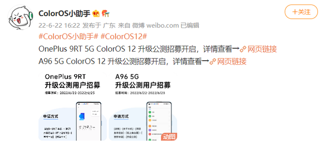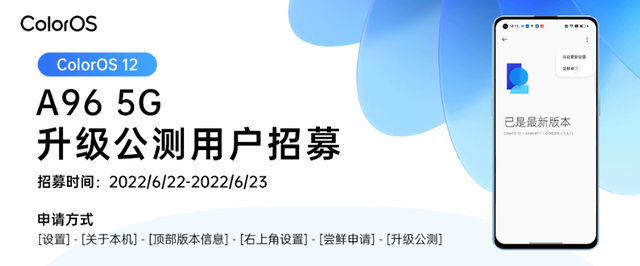 6月22日,OPPO官方微博公布了A96 5GColorOS 12 x Android 12升级公测招募令,相对于Reno系列、Find系列,A系列显然“低调”了许多,作为OPPO的入门级系列产品,OPPO也“毫不吝啬”,赋予了A96最新系统的能力,为了满足大家体验新版本的迫切之心,OPPO于6月22日至6月23日发布招募令,感兴趣的用户可以申请体验一下。