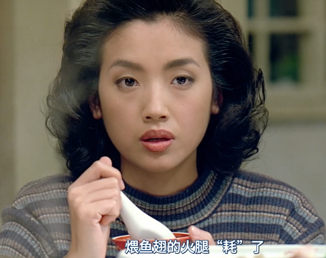 影片开头的第一场家宴,老父亲开口准备讲、没讲成,而女儿们谈及梁伯母,说梁伯母来了以后可以多陪爸聊聊天。