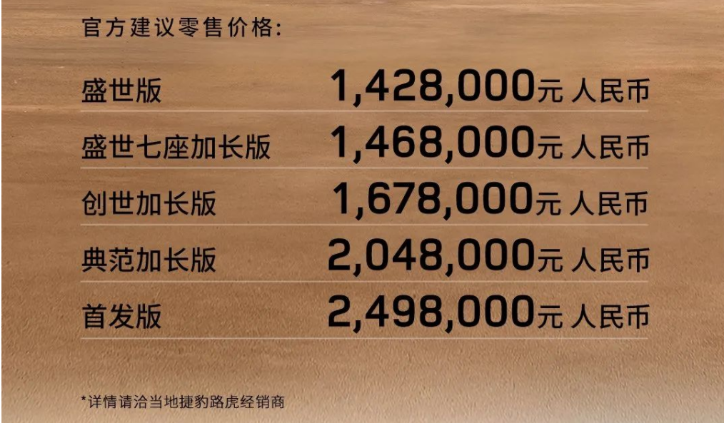 写在最后:从豪华品牌中大型SUV阵营来看,标准轴距揽胜同级车型包括保时捷Cayenne、奔驰GLE、宝马X5等。而揽胜加长版车型则有望与迈巴赫GLS、宝马X7,甚至宾利添越展开竞争。新增的盛世版车型进一步拉低了全新揽胜的车型门槛,考虑到142万元的价格,其也将成为全系走量车型,而创世加长版则弥补了上下两款车型过大的价格差。