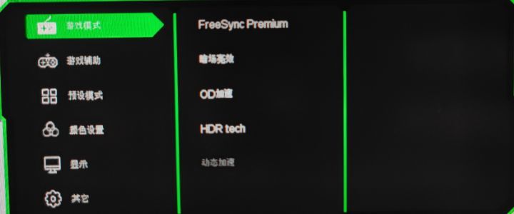 蚂蚁电竞ANT27VU背部有一个OSD摇杆按键,可以实现按下可以进入菜单界面,直接拨动摇杆可以实现快捷操作。在菜单界面中可以对显示器亮度、色彩、场景等各种配置进行调节,值得一提的是它还支持FreeSync Premium功能,开启之后可以有效的提升画面的流畅度,不会出现游戏画面的撕裂,绝对是游戏党的最实用的功能之一了。
