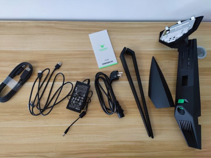 跟大多数显示器一样,蚂蚁电竞ANT27VU采用的是纸箱和泡沫包装,泡沫的背面凹槽处塞了一些配件,保护性还是不错的。拿出配件之后一目了然:DP线、HMDI线、电源适配器、显示器支架和两个脚托。