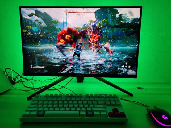 不过需要吐槽的是,个人认为菜单逻辑还是有些混乱,比如“游戏模式”和“游戏辅助”应该合二为一,“预设模式”应该归为“显示”菜单中。另外建议摇杆快捷操控更改为“调节亮度”这样的高频操作,或者可以让用户自定义,这样更方便一些。另外屏幕支架的“占地面积”较大,显示器的进深大概35厘米左右,因此如果你的桌面宽度不足80cm的话,那么显示器距离眼睛就有些过近了,建议搭配一个较宽的桌子使用。