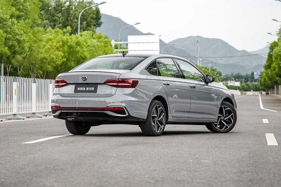 车身侧面造型延续了朗逸现代、大气的风格,修长的腰线贯通前后,侧面充满了立体感与力量感。针对两款前脸,还搭配有不同的轮圈造型,来凸显不同的车身风格。新款朗逸的尾部设计张力十足,富有层次感。此外,星空版车型还配备了黑色动感尾翼,以及黑化处理的后视镜,提升辨识度的同时,增加了不少高级质感。