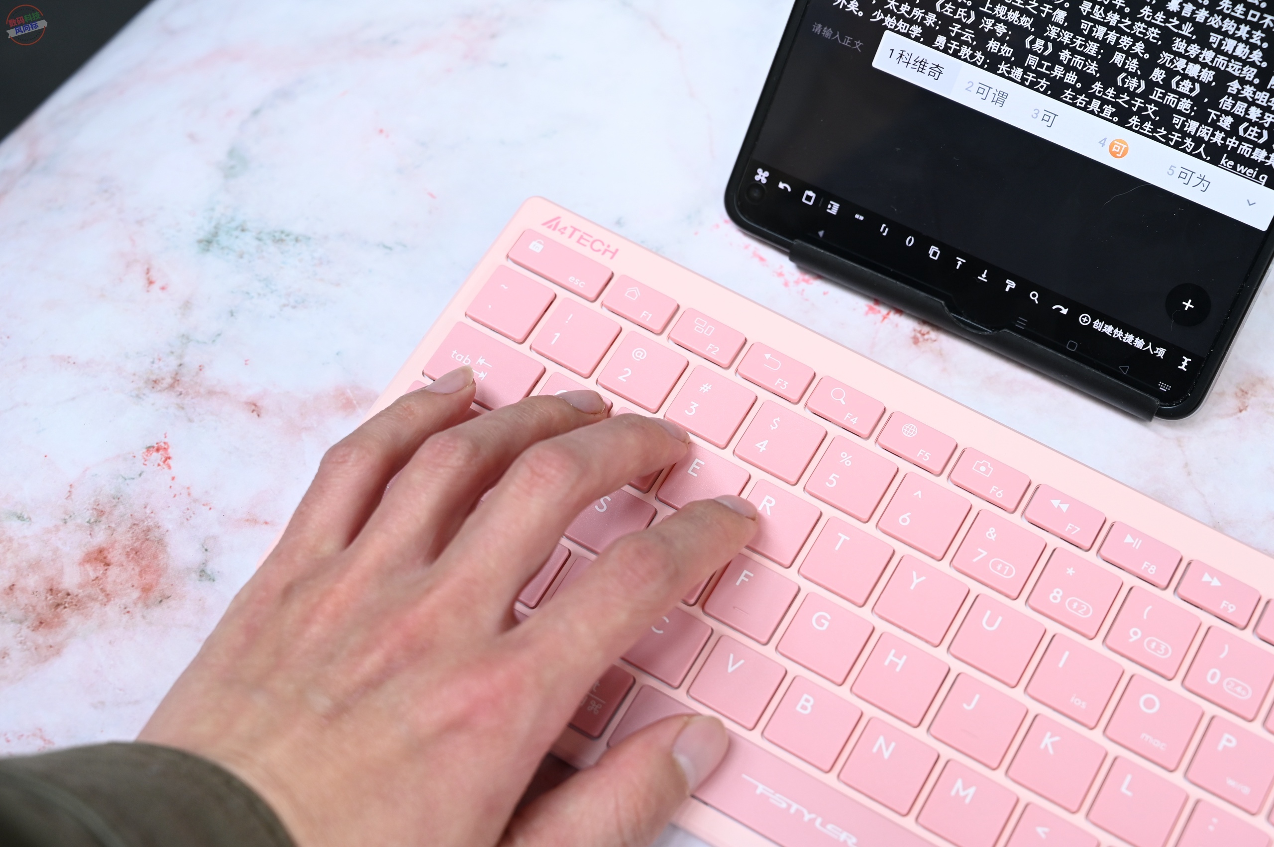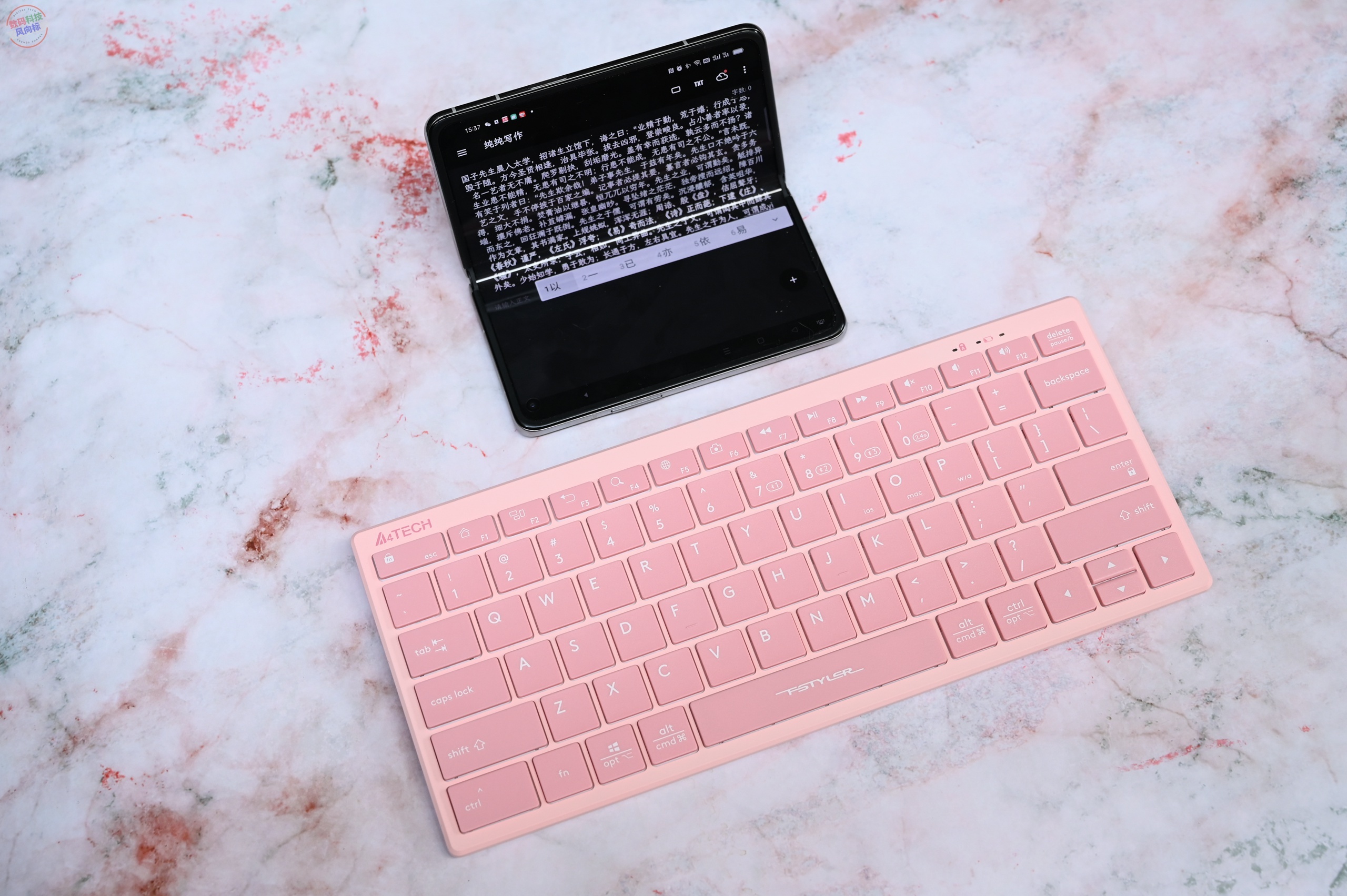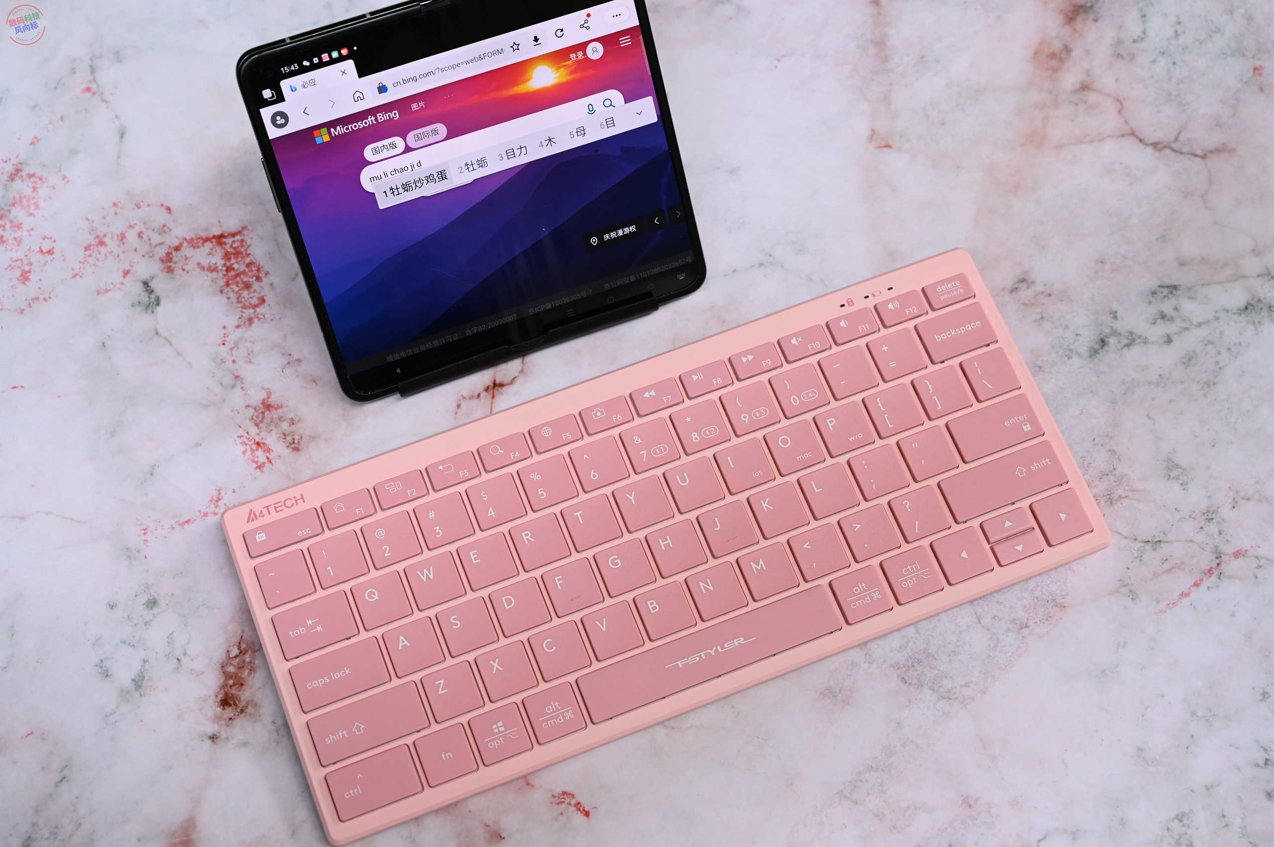 目前我用的是一款百元左右的国产键盘,而且做得十分小巧,可以轻松收纳到背包里,有时候需要在家办公的话拿出来就能用。我用的这款双飞燕飞时代FBX51C键盘,做得十分好看,应该也能得到很多学生党的欢迎,这款键盘的配色很多,我选择了一款樱花粉的配色,外加一只同样配色的FB10C蓝牙鼠标。
