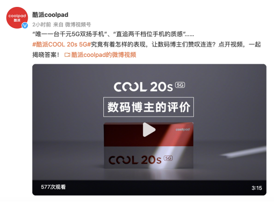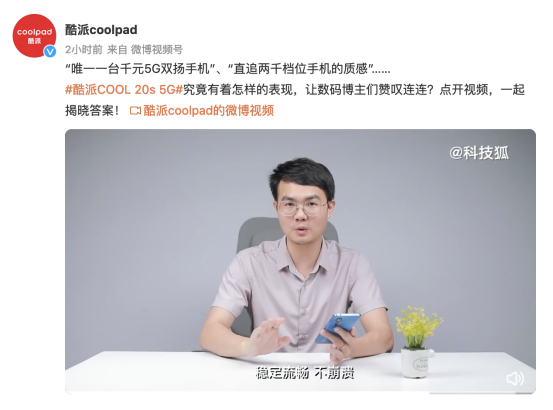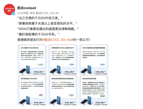 6月13日,酷派发布了本年度的首款新机酷派COOL 20s 5G。凭借着过硬的产品实力和仅999元的起售价,新机一经发布就引起了不小的反响,不仅引来了一大批网友的关注,更收获了不少数码博主和知名媒体的盛赞。