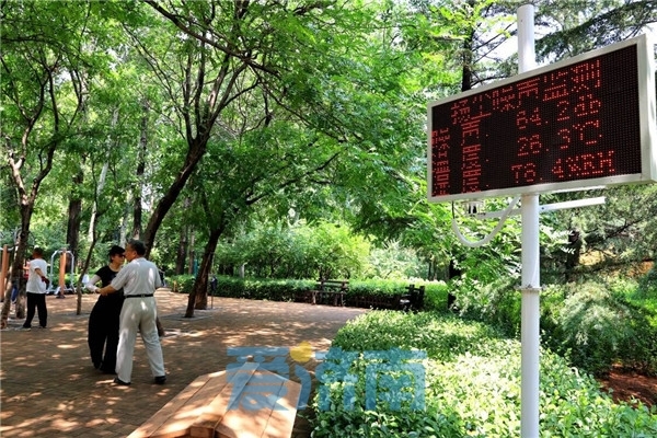 公园建立‘人人都是检查员’制度,广泛听取干部职工、市民游客的建议和反映的问题,不断摸索创新,不断改善园区环境和提高精细化管理水平,确保垃圾及时清扫清理到位,公厕清洁消杀、无异味。同时,在园区内增设多个天气预报设备,为市民游客,为出行、生活等提供便利。此外,园区还在多处安装便民挂衣架,并开辟林下休闲健身场地、安装休憩座椅,既美化了环境也保护了绿化植物,为游客提供多方位游览需求。特别是节假日带着孩子游玩的居多,熙熙攘攘的人流里总会有粗心的家长与孩子走散,也有粗心的市民遗失物品……每当发生这样的事情,公园保卫人员总会想方设法让他们重逢,让遗物物归原主。针对过去周边居民投诉跳广场舞唱歌扰民问题,公园加大巡园力度,加强噪声监测,做好劝导工作。通过不断的引导、宣传,不文明游园的现象大幅减少。真正把公园建设成为绿色温馨的“城市氧吧”,群众舒心满意的乐园。