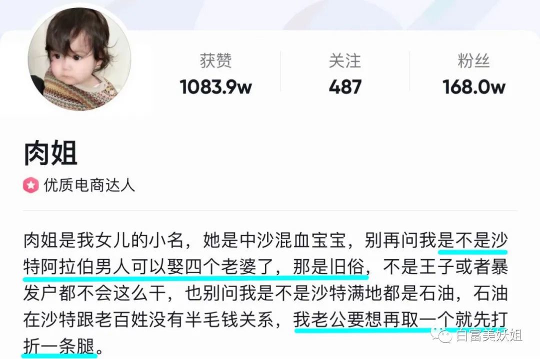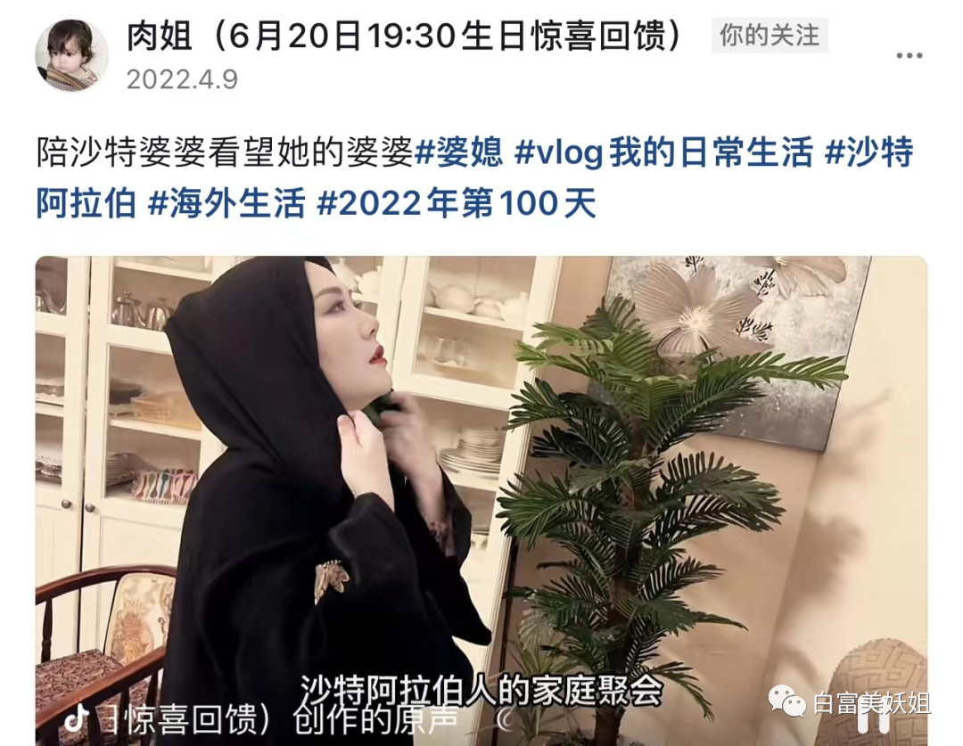 里面提到了抖音另一位沙特知名贵妇@肉姐 ,虽迟但到。