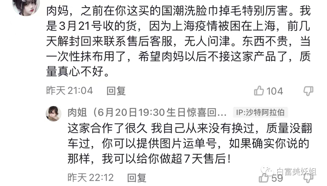 直播间推荐的洗脸巾,又被多位粉丝反馈掉絮严重。