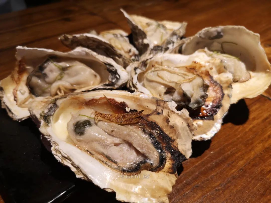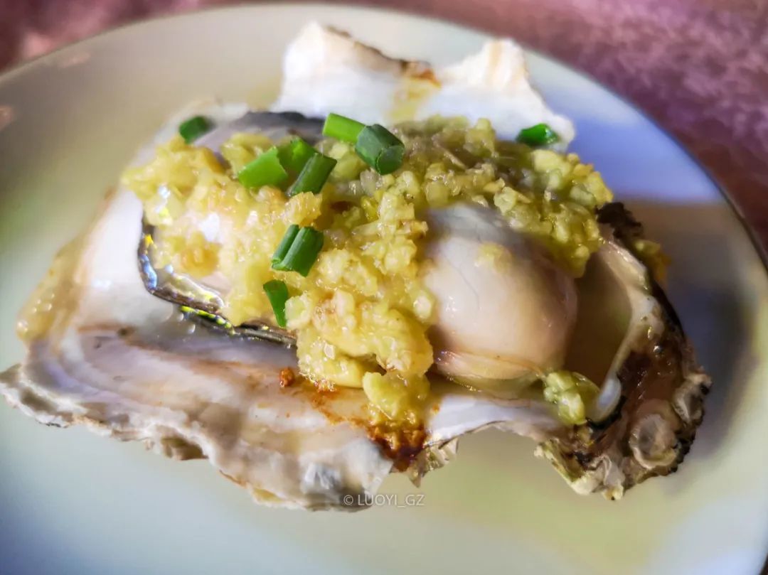 到湛江怎能不吃生蚝?第一顿正餐去了有名的烧蠔帮(霞山观海店),点了两种口味各半打。具体什么口味忘了,先上来这半打,我吃的3只里有2只烤干了,另一只也只有一点点汁。