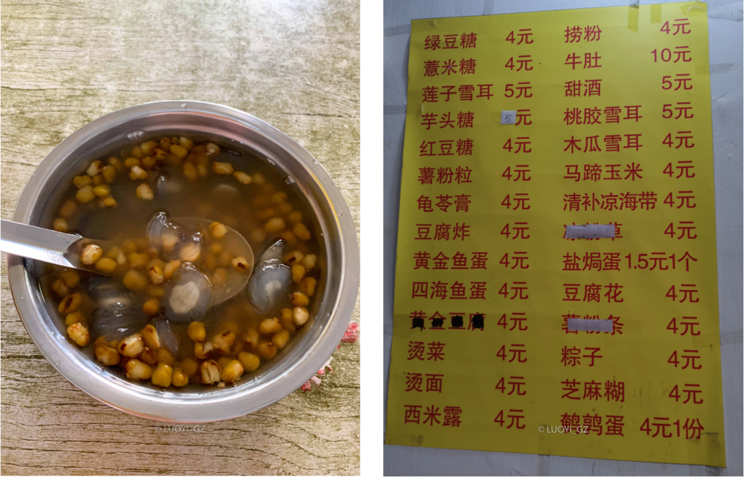 下图右就是给我留下“后遗症”的菜单,广州的糖水都奔10块去啦!
