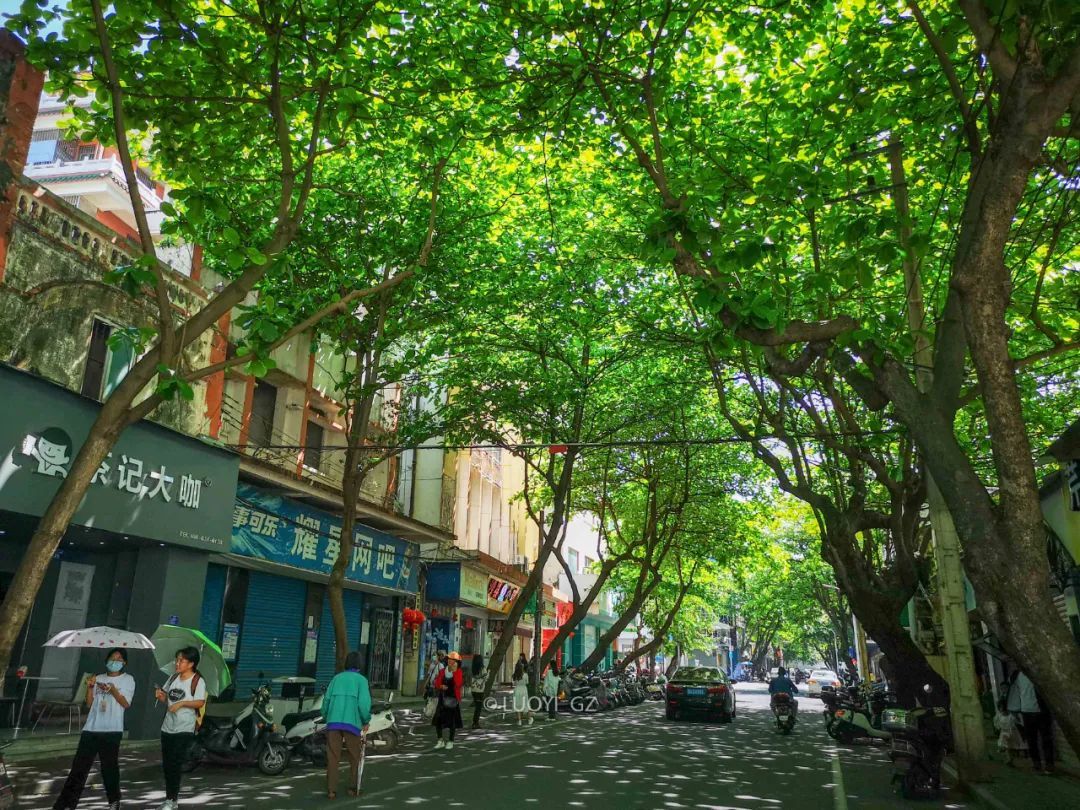 早上从酒店溜达去赤坎老城,一出门就留意到繁茂的行道树。大叶榄仁名副其实,宽大的叶子在热带城市十分尽职地遮挡阳光暑气,不知为何广州只种细叶榄仁呢。