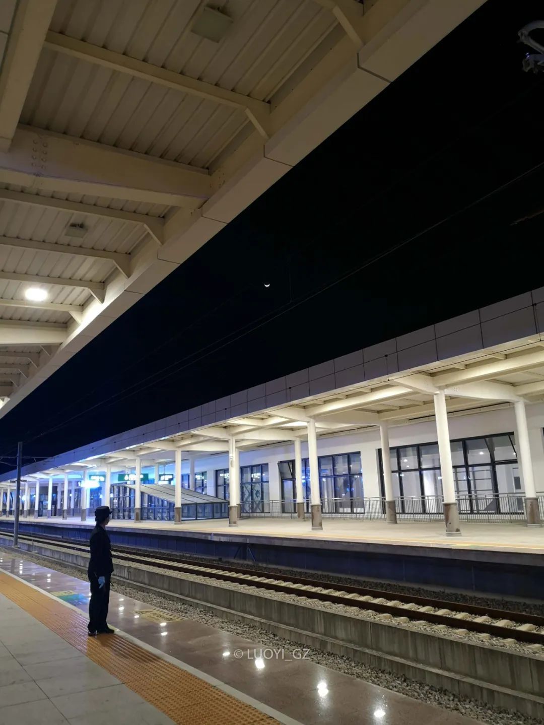 在湛江高铁站,看到我举起手机拍月亮,她也回头望了望。我说今晚的月亮好美,她没回应。