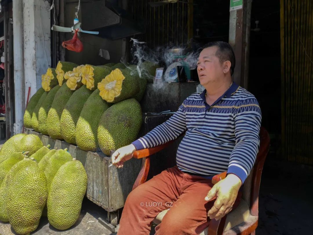 虎哥的身形也跟菠萝蜜一样分量十足,抽烟的时候,唏嘘中带点犀利的眼神,就像周星驰电影里那些深藏不露的猪肉佬。祝虎哥生意红红火火!