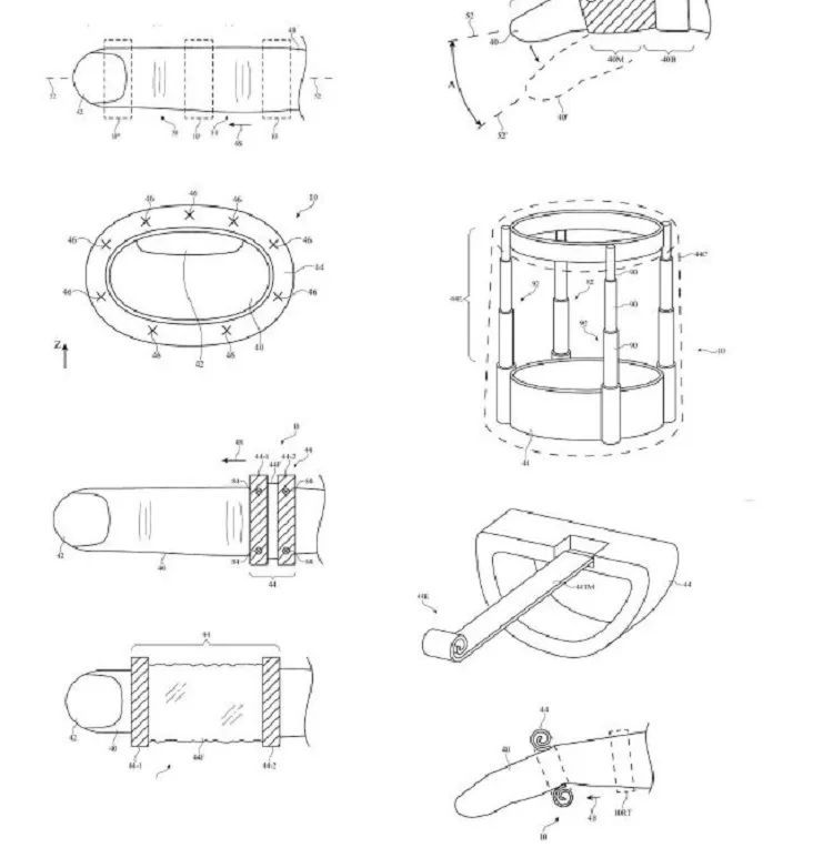 苹果智能指环的外壳由环形主体和连接到主体的可伸展部分构成,而可伸展部分则包括了铰链的翼片、可旋转外壳构件、具有内部可调节框架和盖的外壳、由连接在第一环形设备和第二环形设备之间的可伸展管形成的可伸展外壳,以及其它可伸展结构。