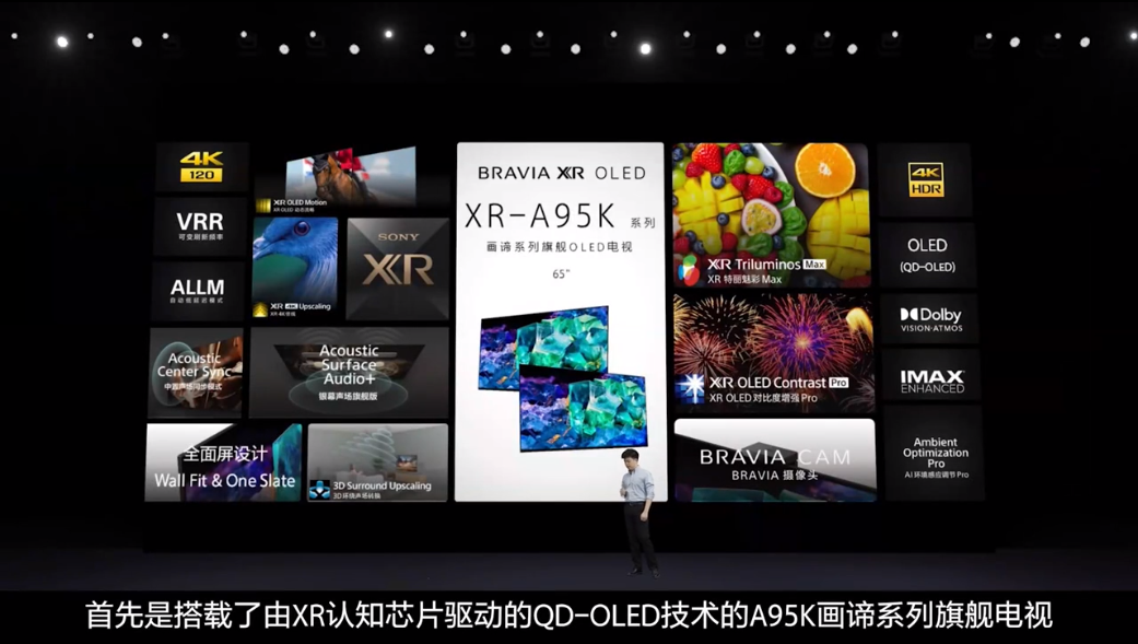 同场发布的还有首次采用了QD-OLED显示技术的XR-A95K。它同样搭载了XR认知芯片,支持XR特丽魅影Max、XR OLED对比度增强Pro技术,全面发挥QD-OLED面板的高亮度、广色域、宽可视角度的优势。