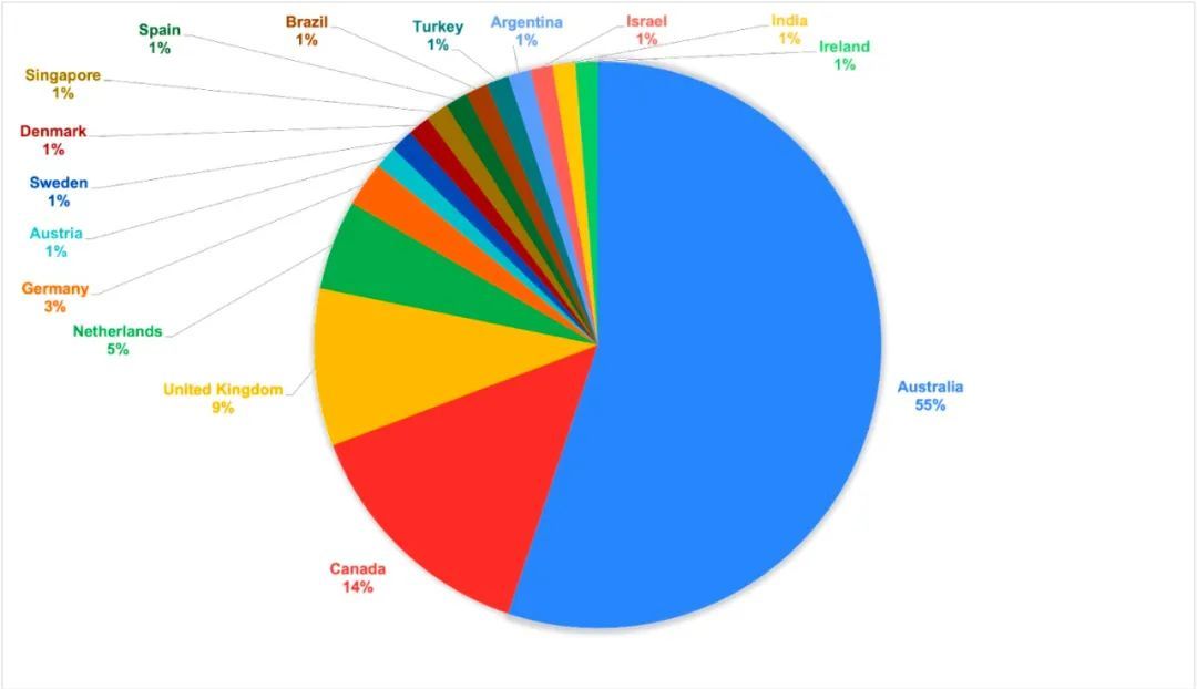 ▲ 参加群展的艺术家国别分布(除美国之外)
